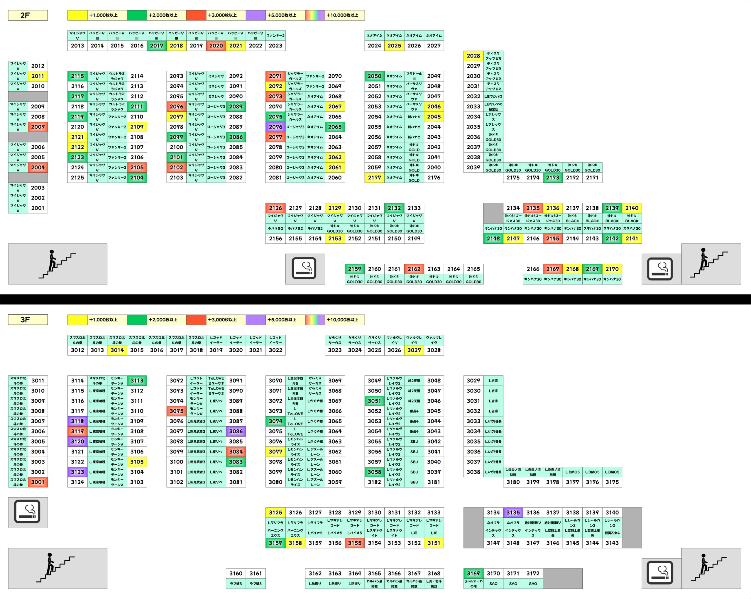 もちろん、⑤のつく日はジャグラー以外にも仕掛け・単品が用意され、今回は3階告知が行われたので3階機種にも期待できる状況でした。
