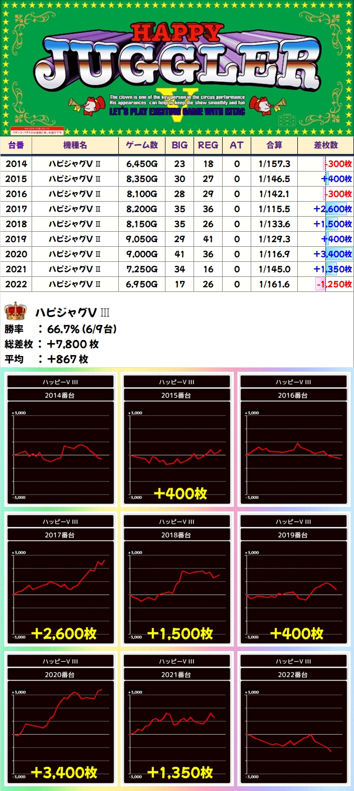 【全台系濃厚】ハピジャグV Ⅲ(6/9台+)→平均+867枚