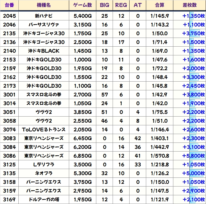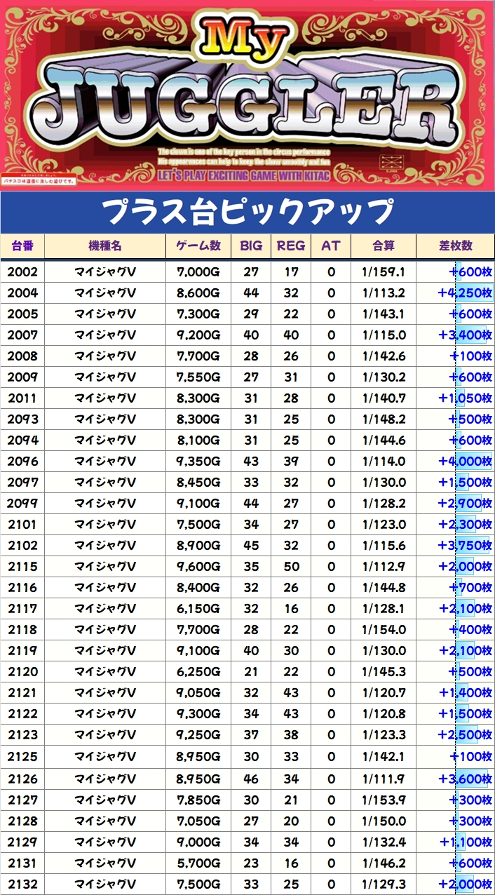 そして、この日は1/2系濃厚の結果になっており、10台中5台がプラス差枚となっていました!