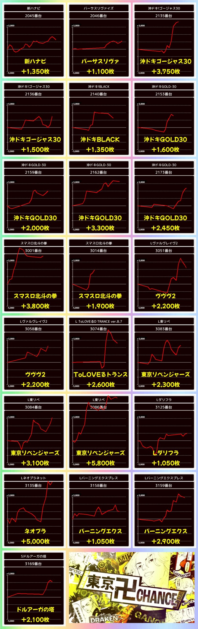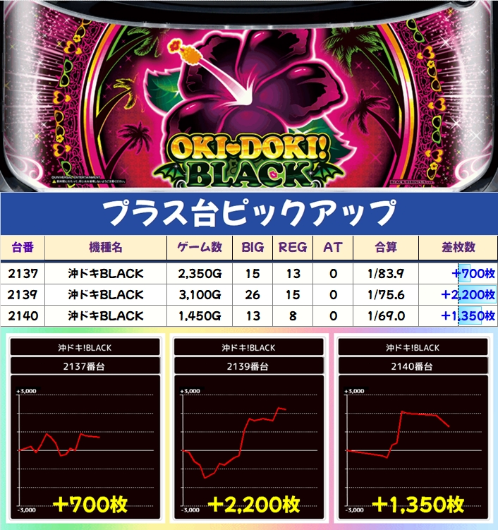 ⑤の日は光モノとして沖スロも強い傾向にあり、今回はキンハナ・スタハナ・沖ドキBLACKが好結果に!