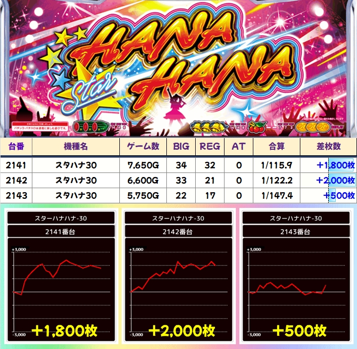 【高配分】スタハナ30(3/3台+)→平均+1,433枚