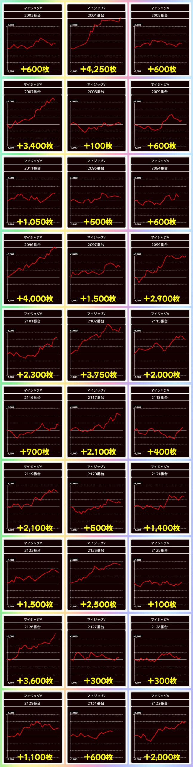 ⑤のつく日と言えばジャグラーの末尾仕掛けですが、今回も末尾⑤のジャグラーから優秀台が多数出現!