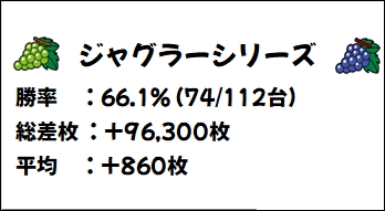 今回もジャグラー全体で大量出玉を叩き出しており、ジャグラーシリーズ全体で総差枚+9.6万枚、平均+860枚と圧倒的出玉を記録!