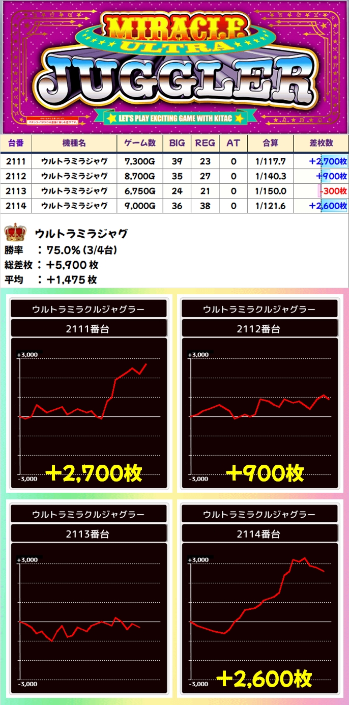 【全台系濃厚】ウルトラミラジャグ(3/4台+)→平均+1,475枚