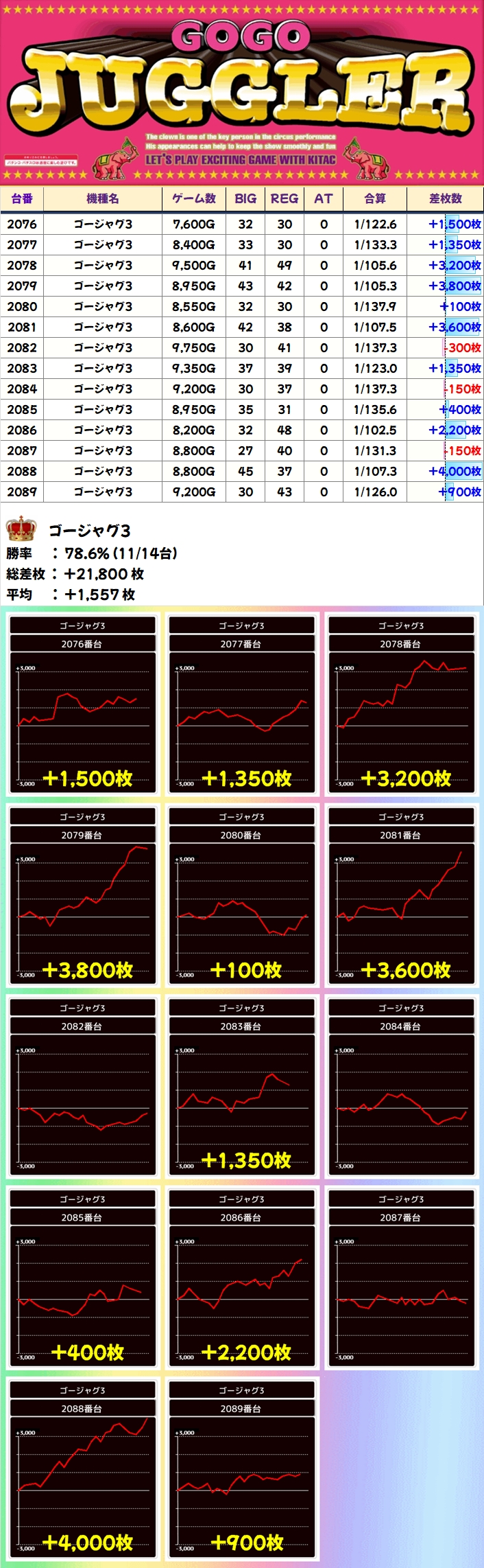 【全台系濃厚】ゴージャグ3(11/14台+)→平均+1,557枚