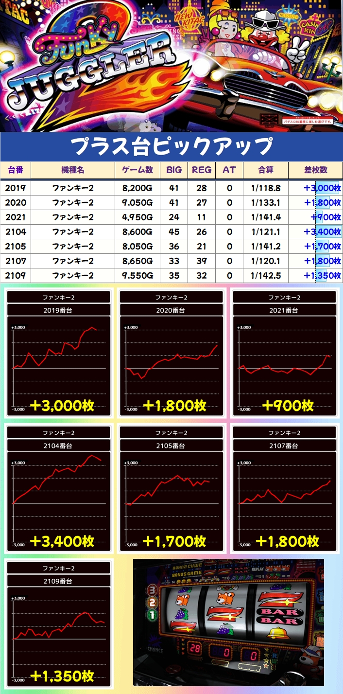【1/2系濃厚】ファンキー2(7/10台+)→平均+1,315枚