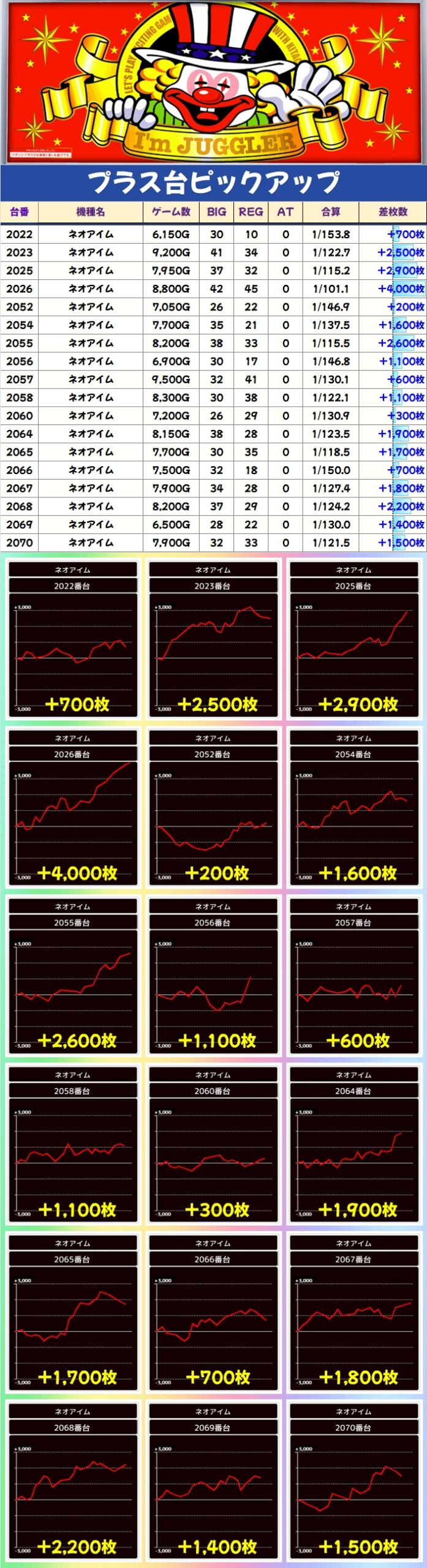 一点突破告知ではジャグラーだけで+10万枚超を記録する日も珍しくなく、平均+800枚超を連発する激熱日となっています。