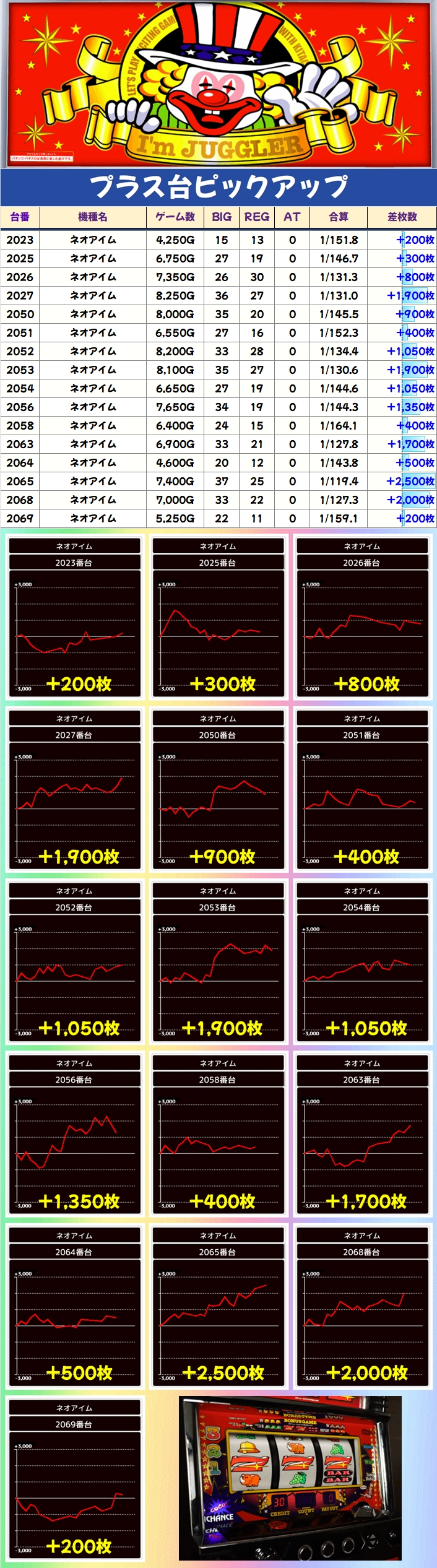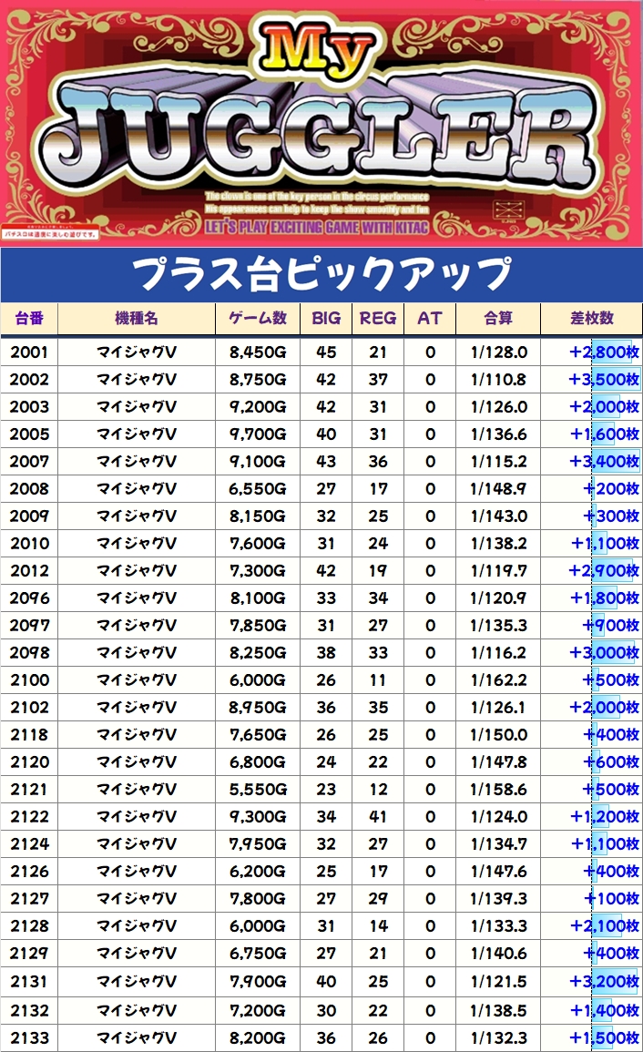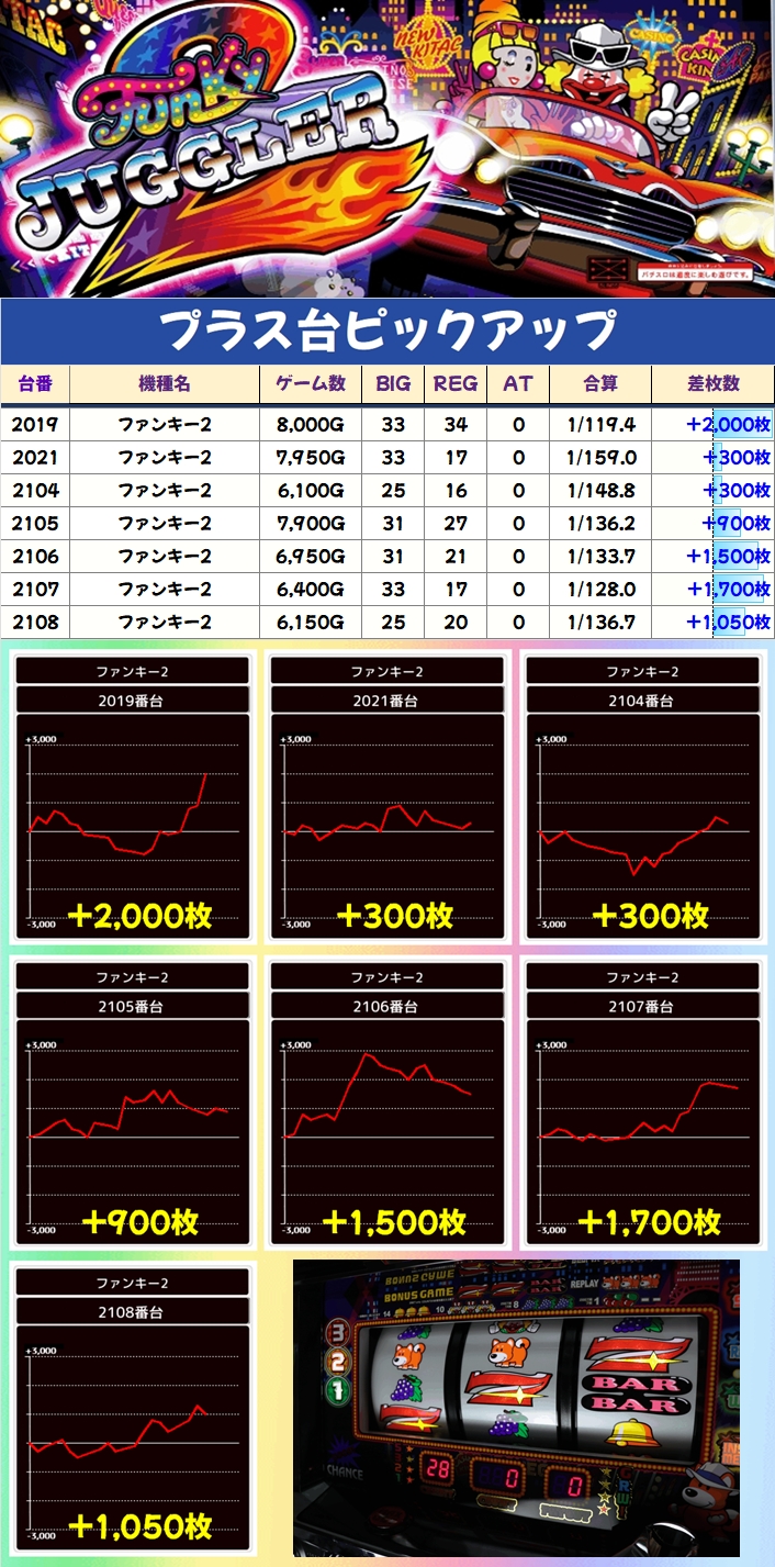今回も機種イチ以上でお宝台が投入されていたようで、幅広い機種から優秀台を確認!