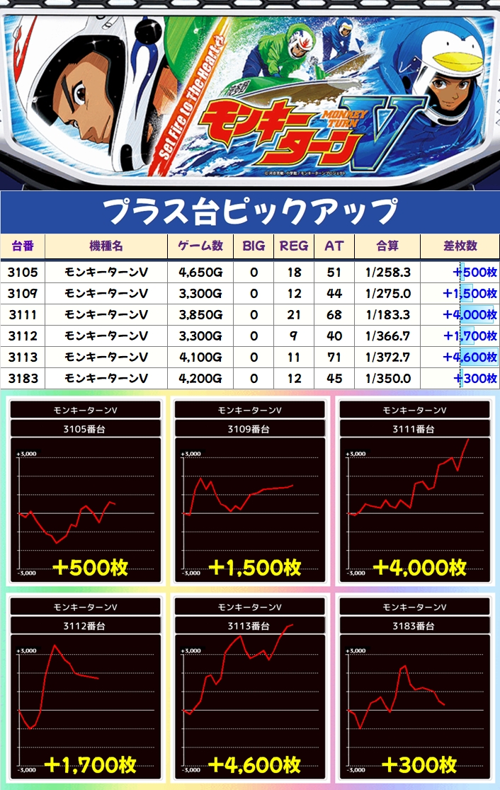 【1/2系濃厚】モンキーターンV(6/14台+)→平均+143枚