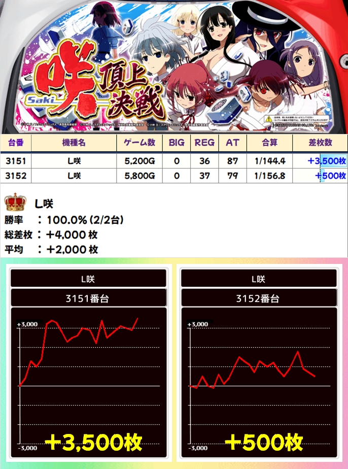 【全台系濃厚】L咲(2/2台+)→平均+2,000枚