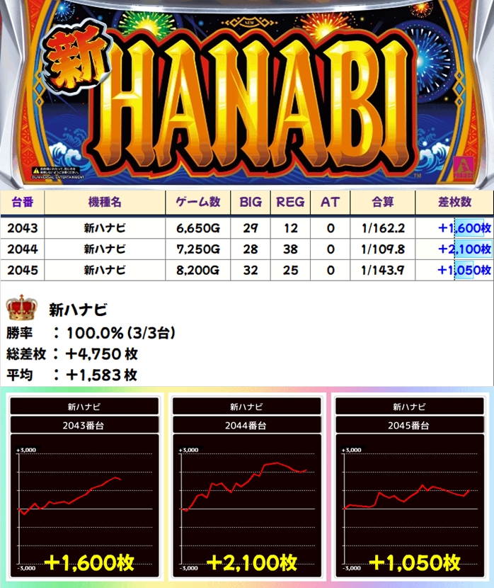 【全台系濃厚】新ハナビ(3/3台+)→平均+1,583枚