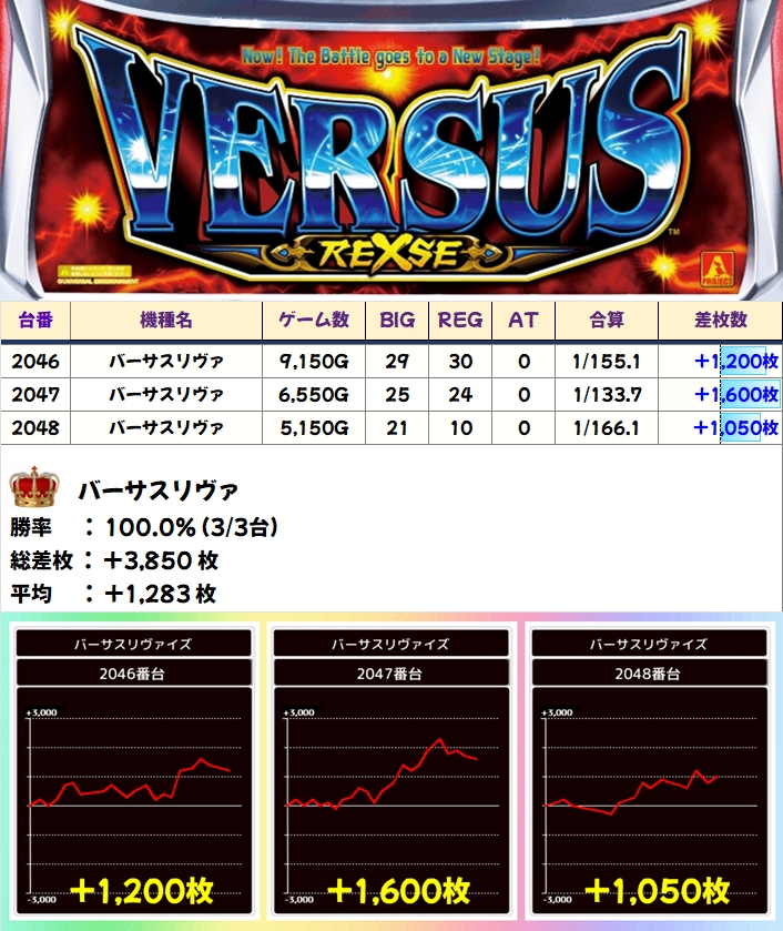 Aタイプ系は安定感抜群で、新ハナビ・バーサスの両機種は全台プラスとなっていました!