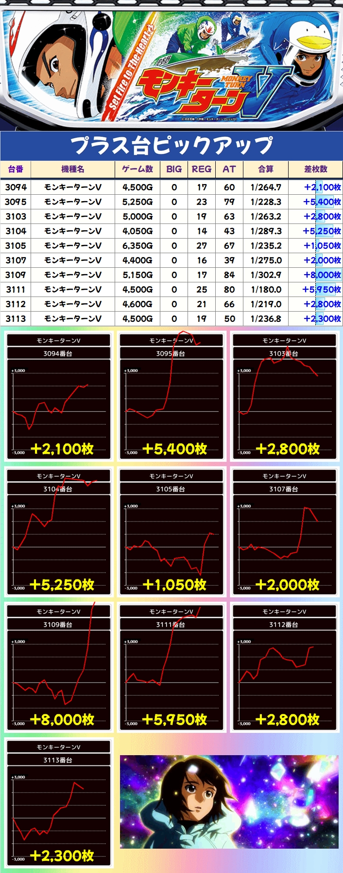 【1/2以上濃厚】モンキーターンV(10/14台+)→平均+2,171枚