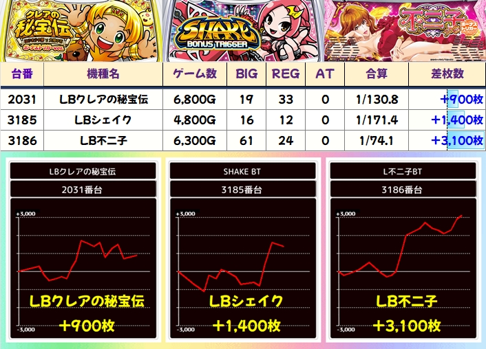 また、BT機も仕掛けの対象になっており、不二子は+3000枚オーバーと大幅プラスとなっていました!