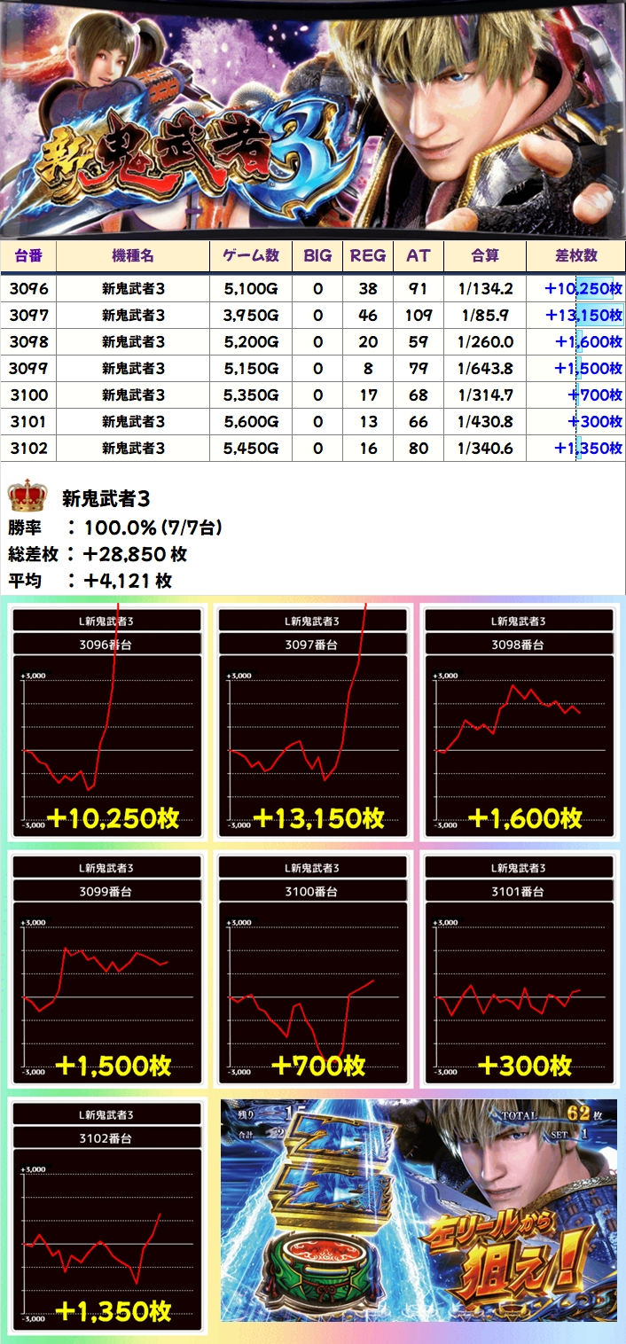 【全台系濃厚】新鬼武者3(7/7台+)→平均+4,121枚