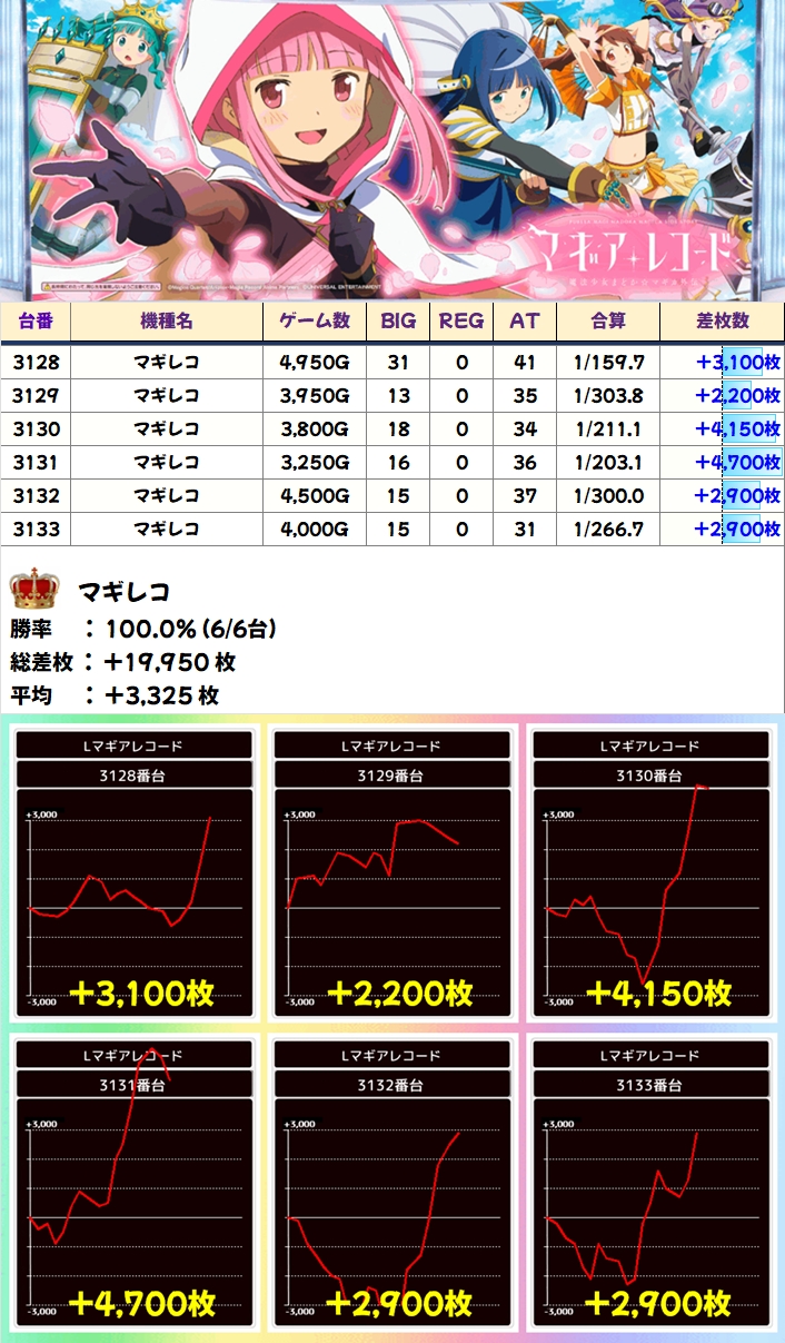 【全台系濃厚】マギレコ(6/6台+)→平均+3,325枚