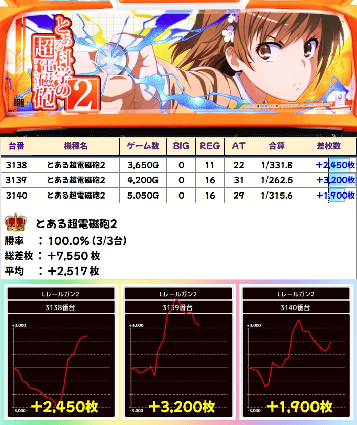 【全台系濃厚】とある超電磁砲2(3/3台+)→平均+2,517枚