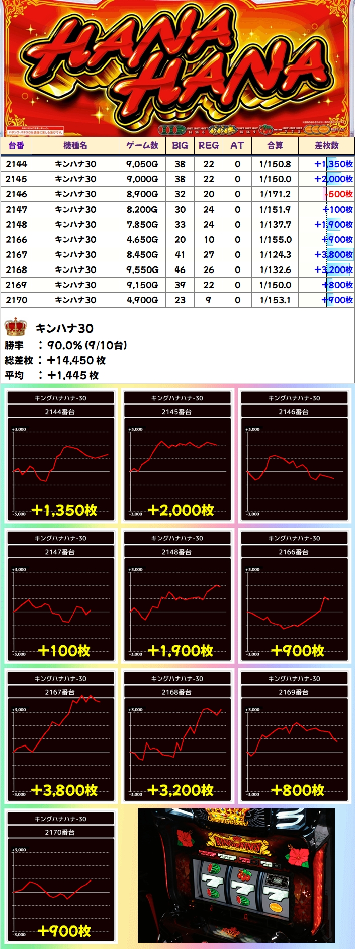 【全台系濃厚】キンハナ30(9/10台+)→平均+1,445枚