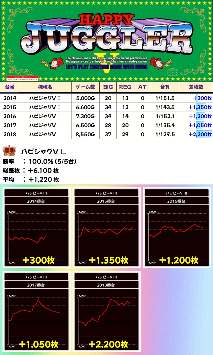 【全台系濃厚】ハピジャグV Ⅲ(5/5台+)→平均+1,220枚