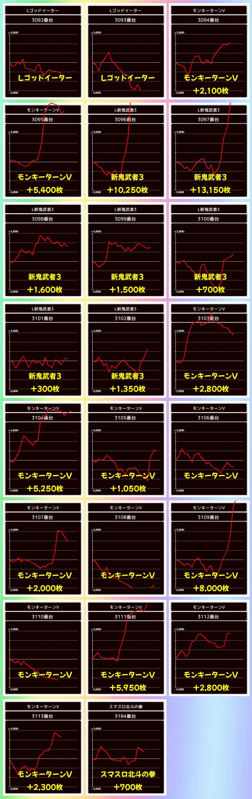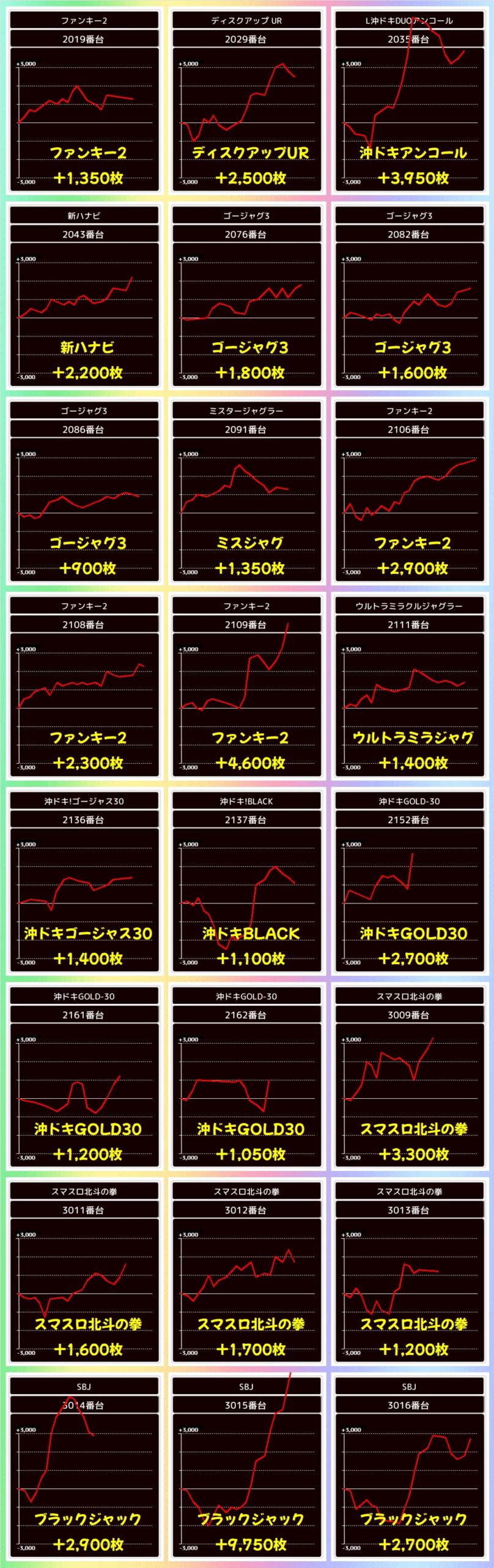 平均+2500枚超と大幅プラスを叩き出しており、上記の中からは万枚オーバーが2台飛び出していました。