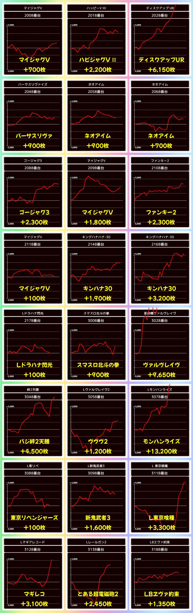 今回は令和⑧年に絡めて末尾⑧が当たりだったようで、全体で平均+1100枚オーバーと好結果に!