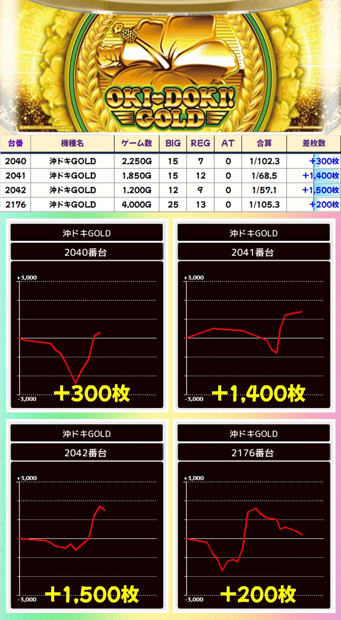 【高配分】沖ドキGOLD(4/4台+)→平均+850枚