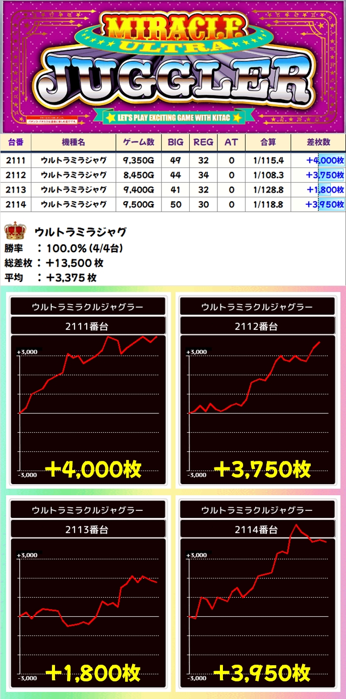 【全台系濃厚】ウルトラミラジャグ(4/4台+)→平均+3,375枚