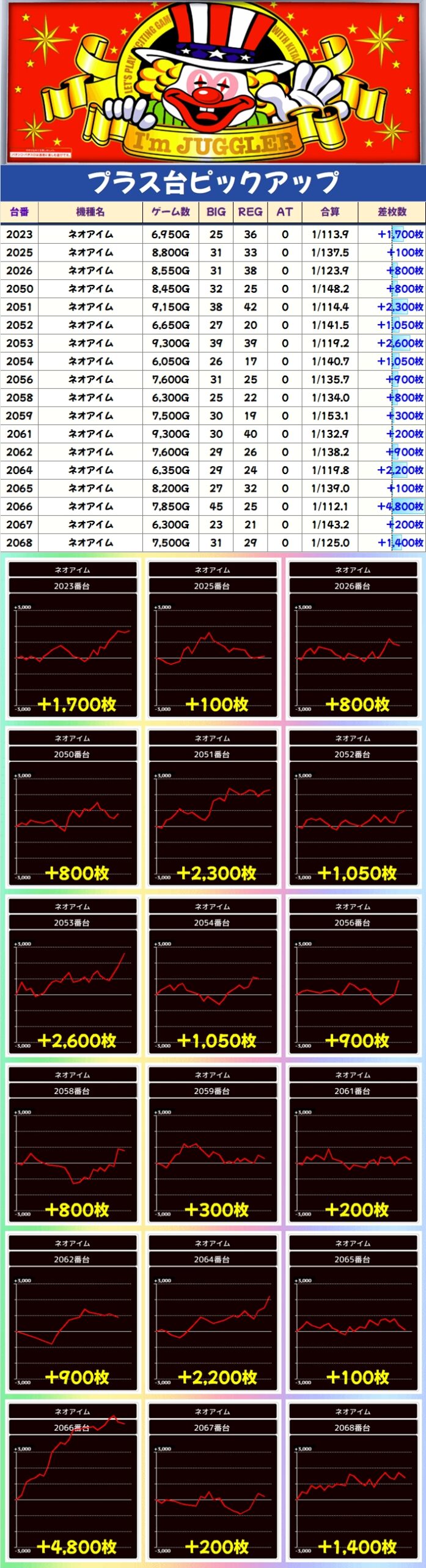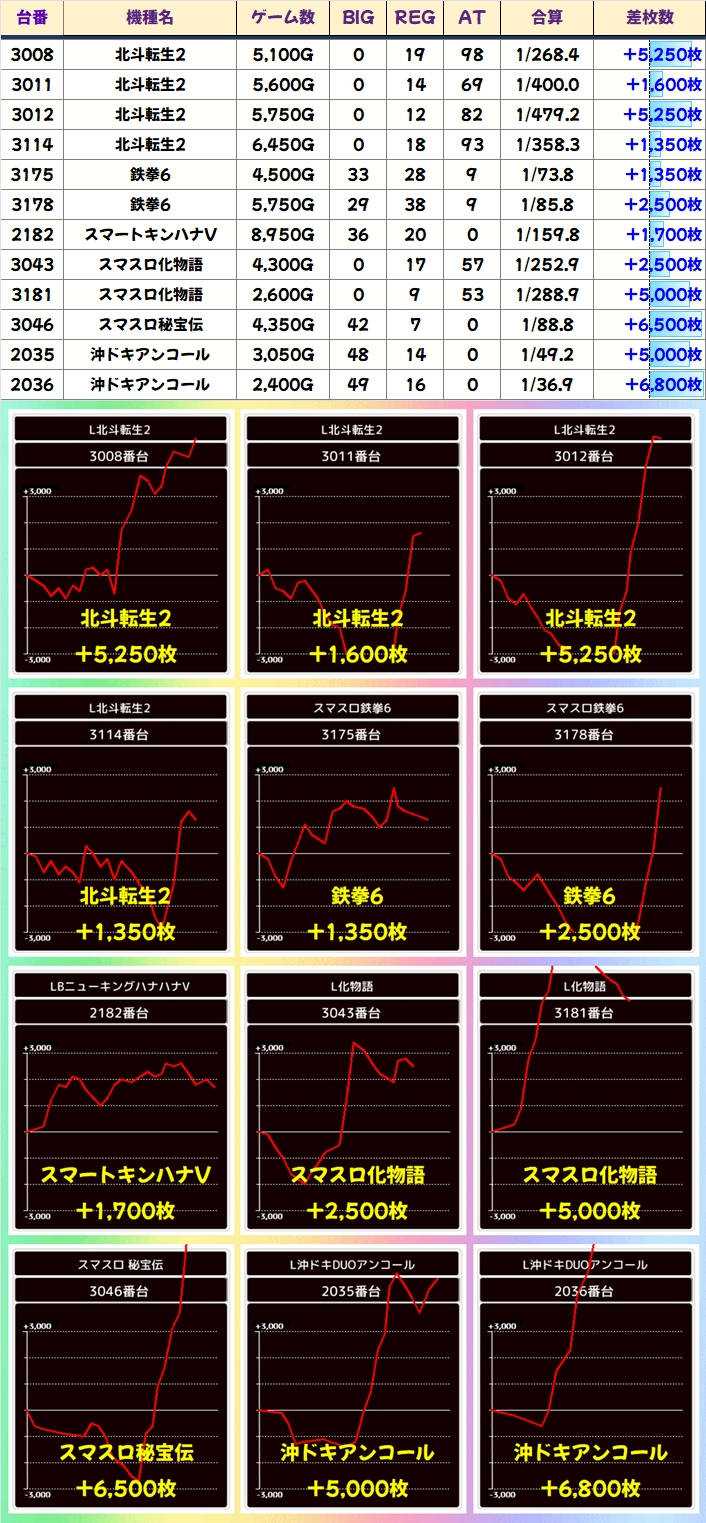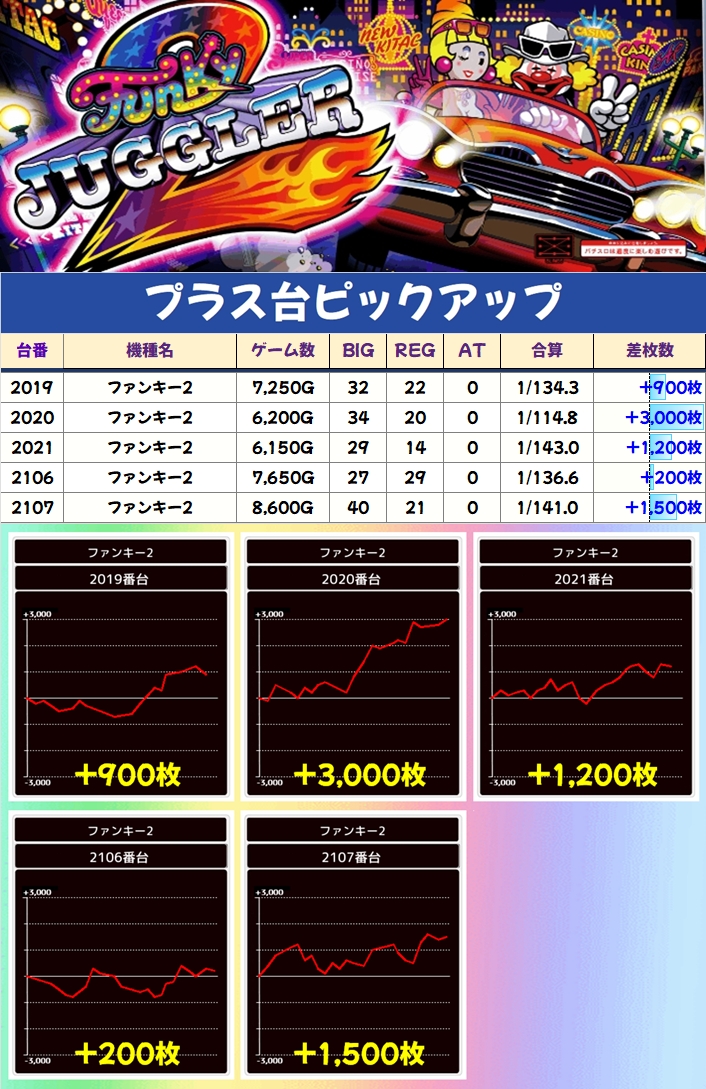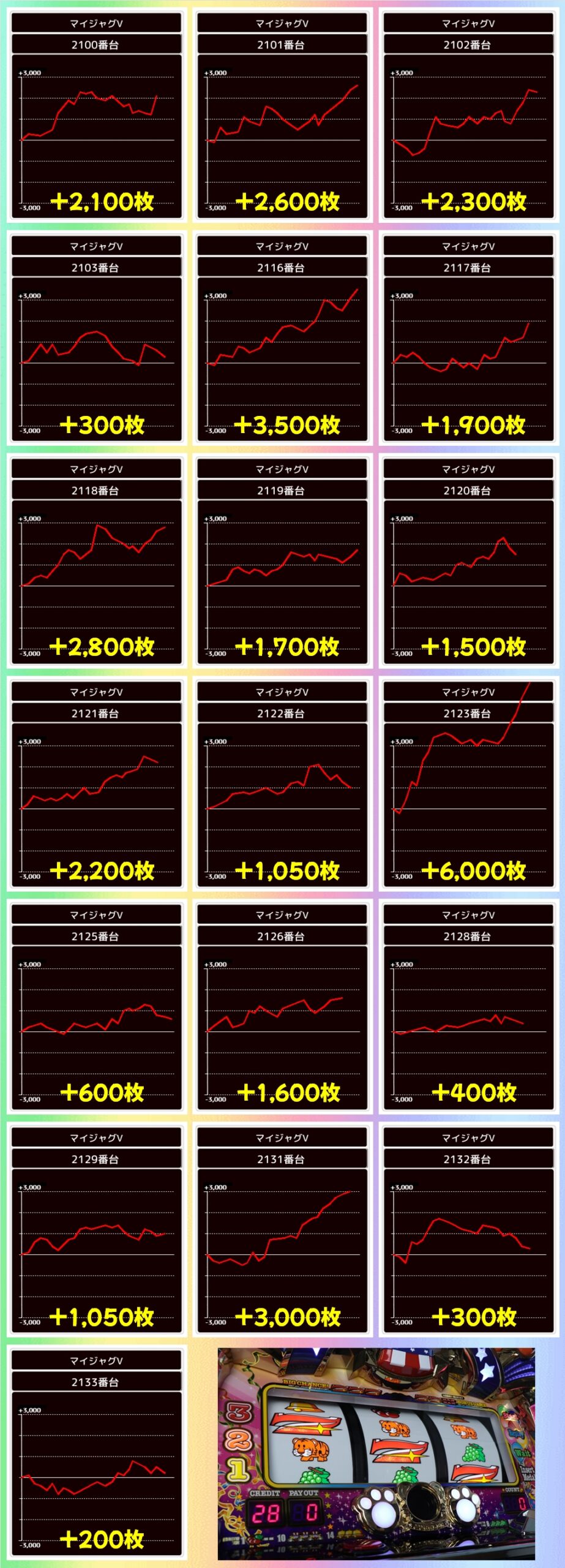 また、末尾⑥は2F全体が当たりだったようで、ジャグラー以外の末尾⑥も好結果となっていました。