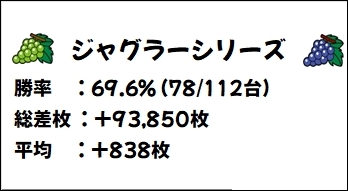 総差枚+9.3万枚、平均+838枚とジャグラー大暴れ!