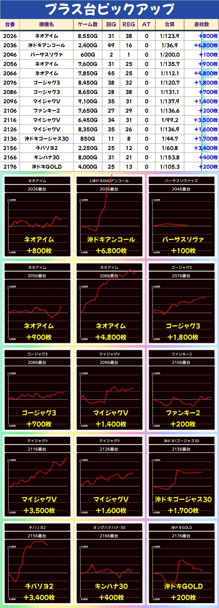 特に沖スロは好結果になりやすい傾向にあるため、次回の⑤のつく日もジャグラーだけではなくその他の機種にも注目しておきましょう。