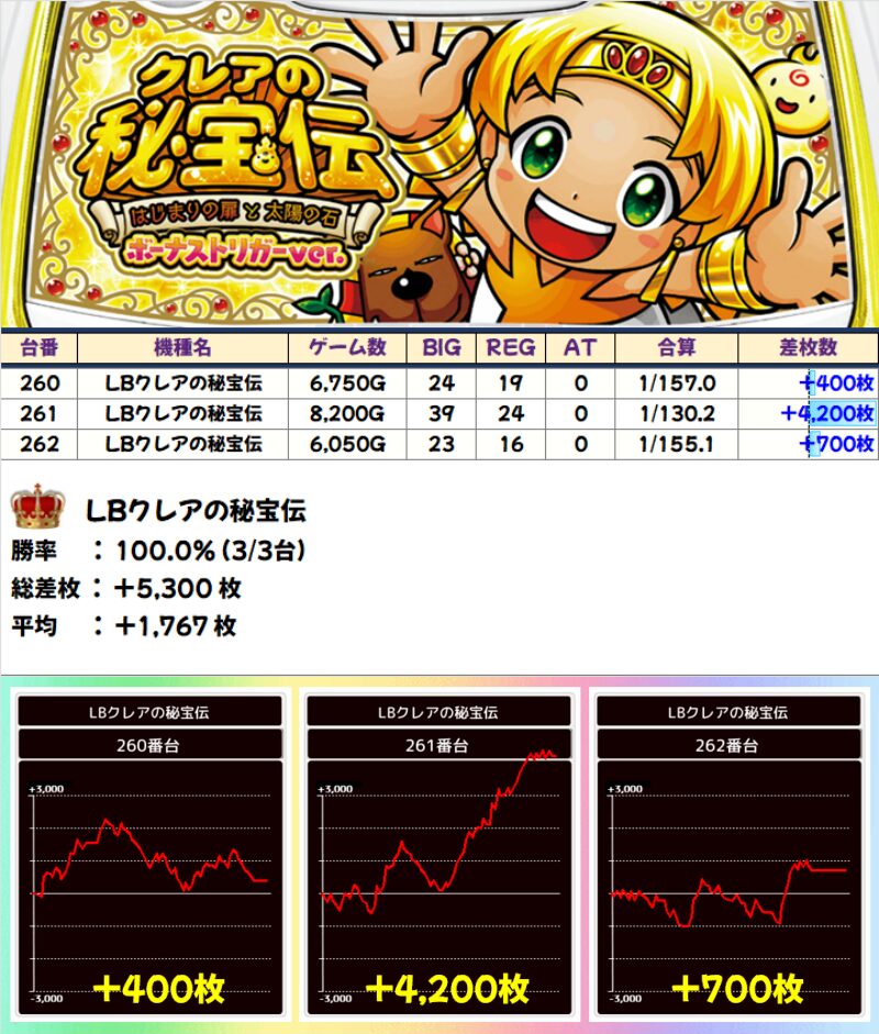 【高配分】LBクレアの秘宝伝(3/3台)|平均+1767枚