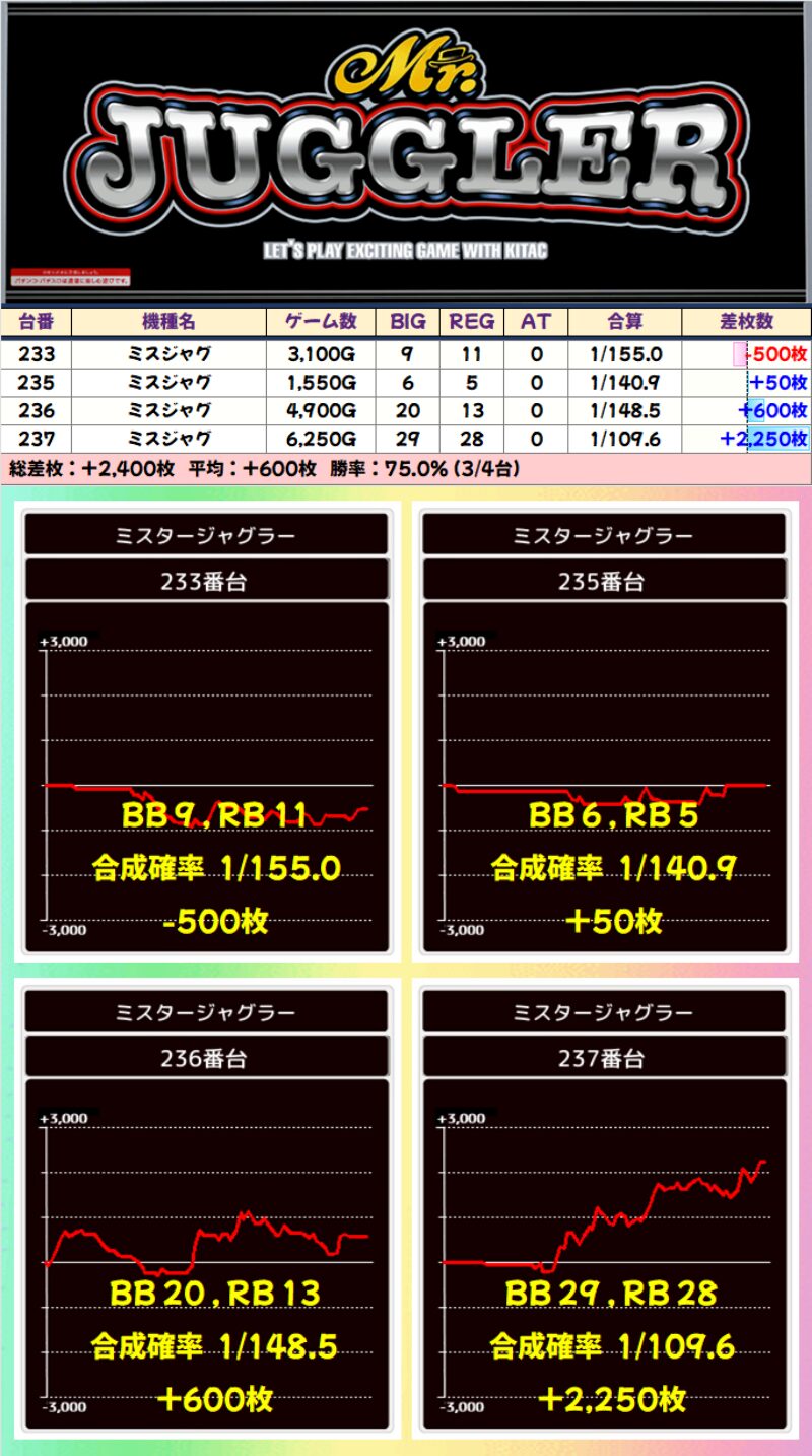 【高配分】ミスジャグ(3/4台)|平均+600枚
