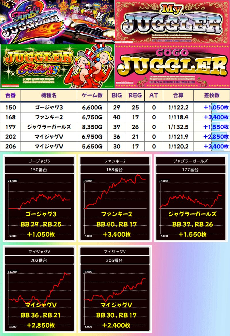 過去の共闘での結果を分析すると、全台系を中心として多くの仕掛けが入る傾向があります。そのため、店内の各シマを見渡すことで優秀台をゲットする確率が上がりそうです。また今回も、来店実戦が両店で入っており、さらなる仕掛けが用意されている可能性が高そうです。