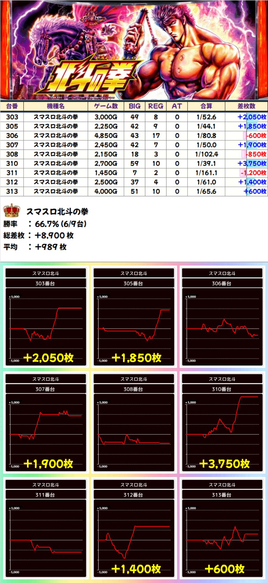 【高配分】スマスロ北斗の拳(6/9台)|平均+989枚