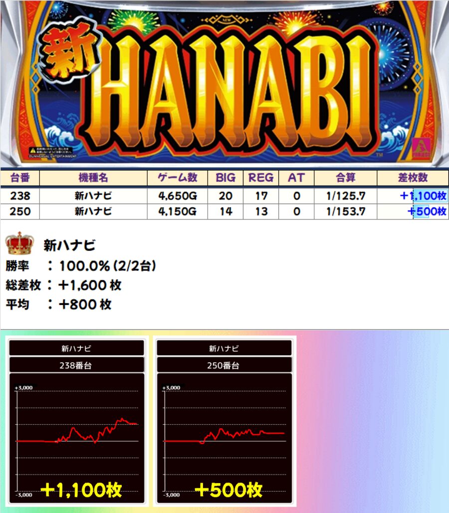 【高配分】新ハナビ(2/2台)|平均+800枚