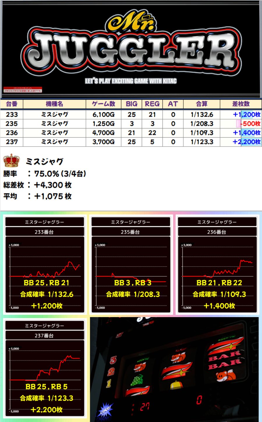 【高配分】ミスタージャグラー(3/4台)|平均+1075枚
