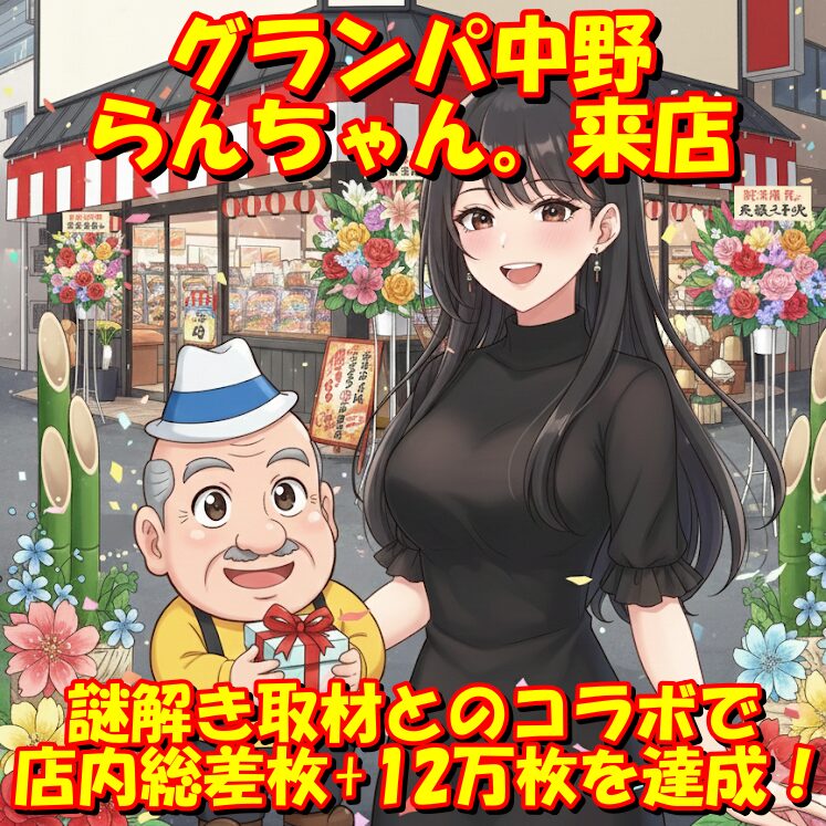 12月21日(日)|グランパ中野|らんちゃん。来店×謎解き取材|店内総差枚+12万枚!モンハンが全台系濃厚で万枚オーバー台も出現!