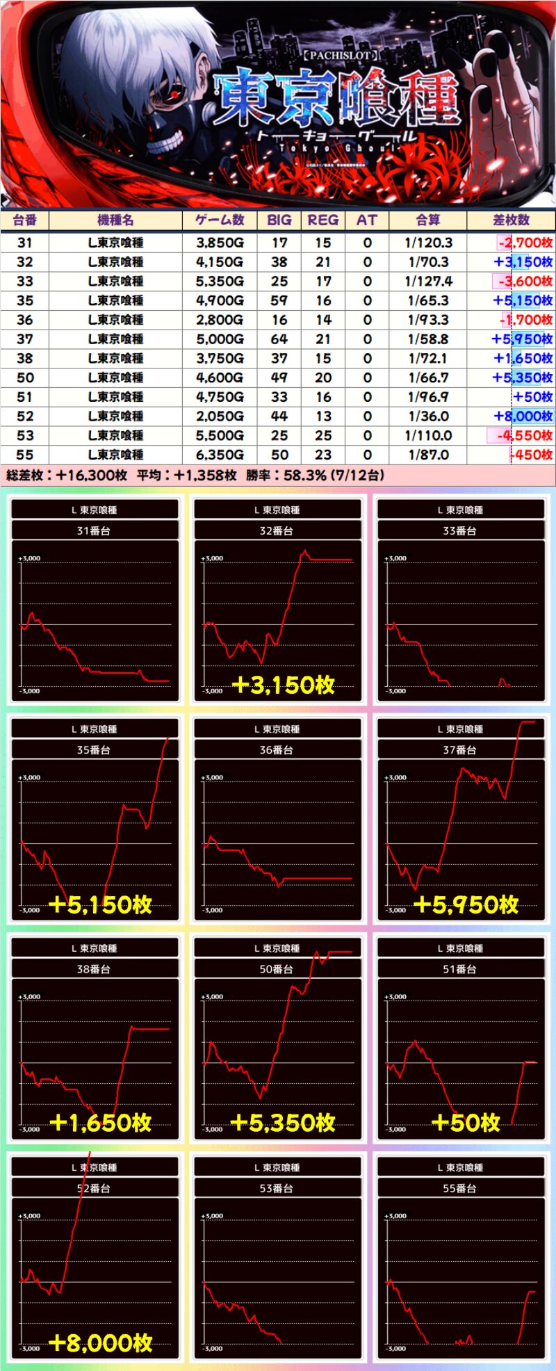 【高配分】L東京喰種(7/12台)|平均+1358枚