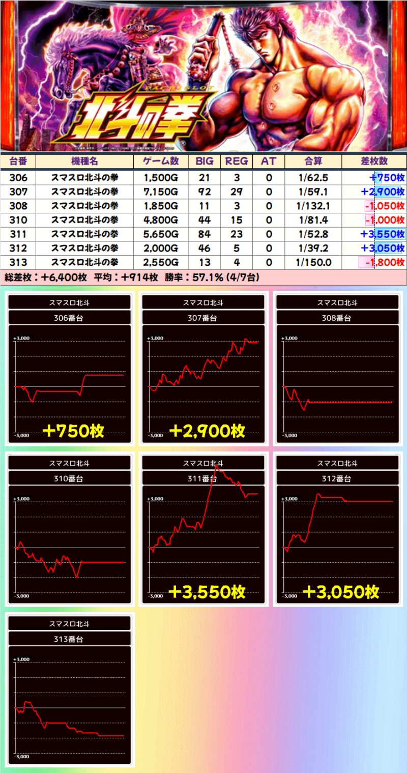 【高配分】スマスロ北斗の拳(4/7台)|平均+914枚