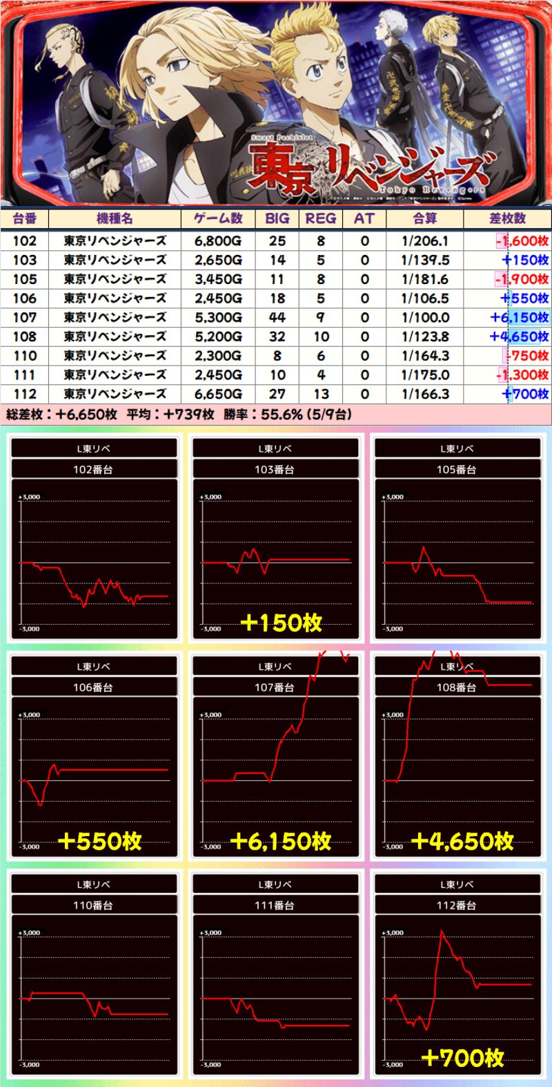 【高配分】東京リベンジャーズ(5/9台)|平均+739枚
