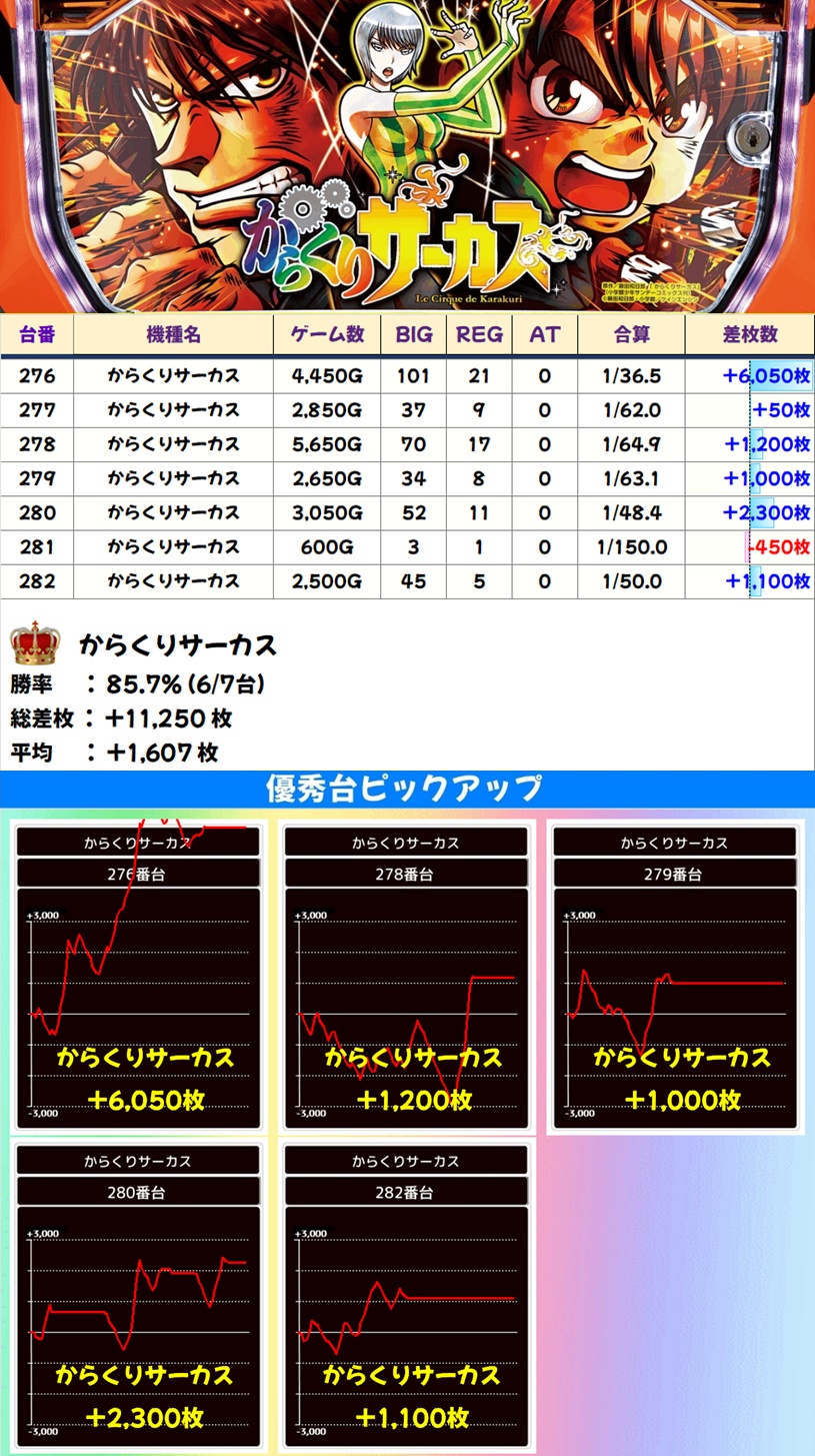 🌈からくりサーカス(7台)【平均+1607枚】