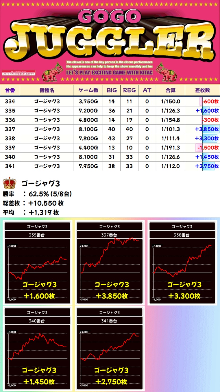 🌈ゴージャグ(8台)【平均+1319枚】