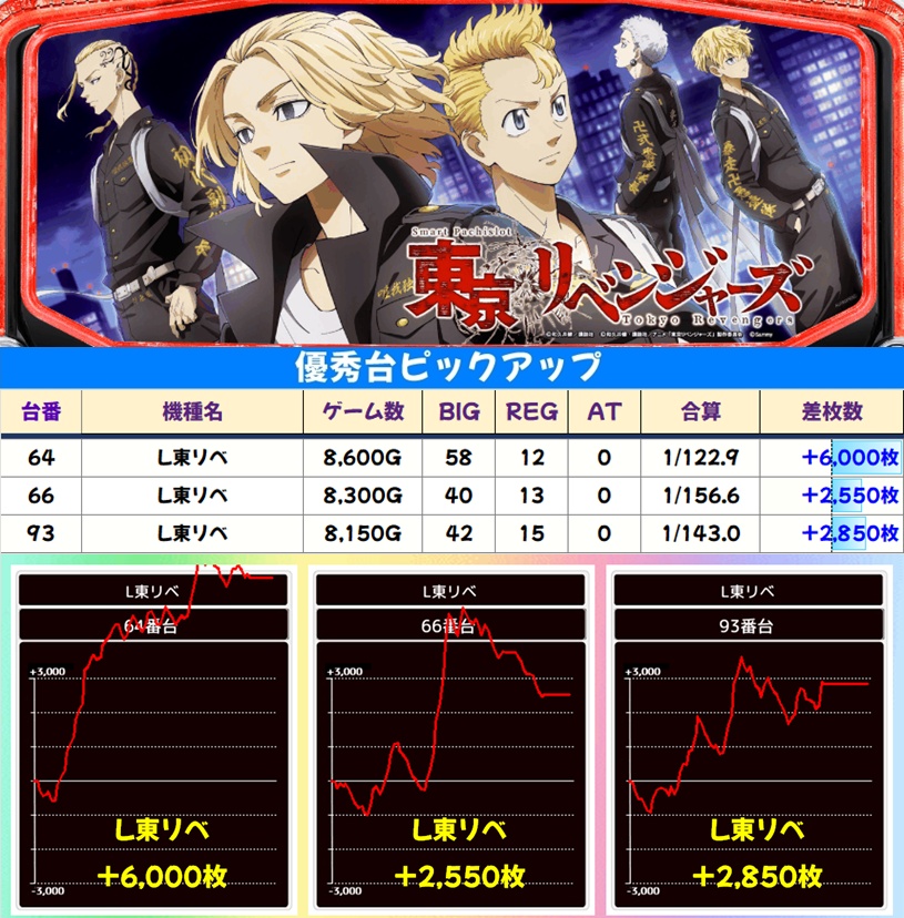 そして東京リベンジャーズからも好結果あり!やはり8の日の推すすめポスター機種は優先して狙うのがオススメです。