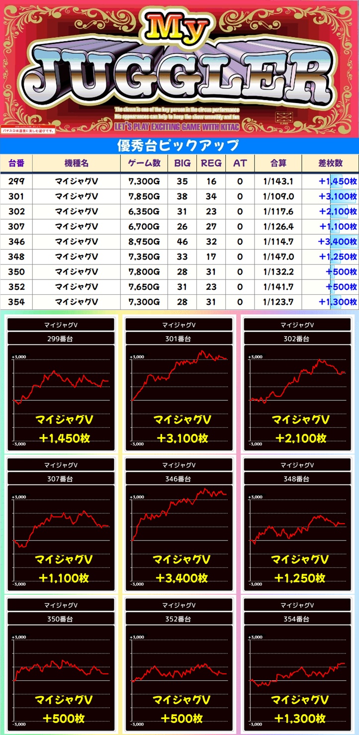 そしてジャグラーシリーズからは【ゴージャグ】【ハッピージャグラー】も高配分以上候補。まさに全タイプが狙い目と言えるでしょう!