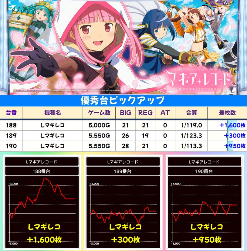 注目機種の【L東京喰種】【マギレコ】は優秀台が多数!