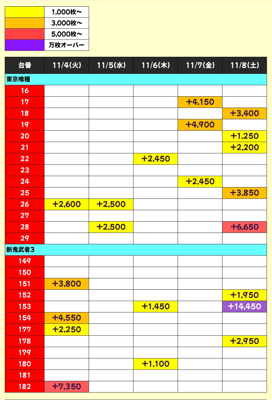 というわけで、11月一発目の【⑧の日】は総差枚+6.5万枚としっかり好結果に!