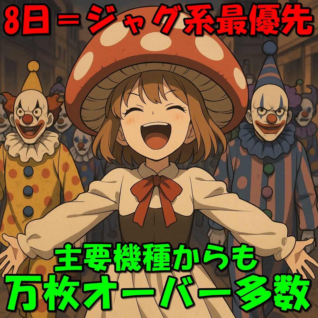 さて、グランパ大久保の大本命日「⑧の日」がやってきました!前回10/8の⑧の日は総差枚+12.6万枚と+10万枚オーバー達成!実は最近の8日は好結果続きとなっており、今のトコロ4カ月連続で総差枚+10万枚オーバーとなっています!そして今回は週末土曜日となっているだけに、当然期待しかありませんね!