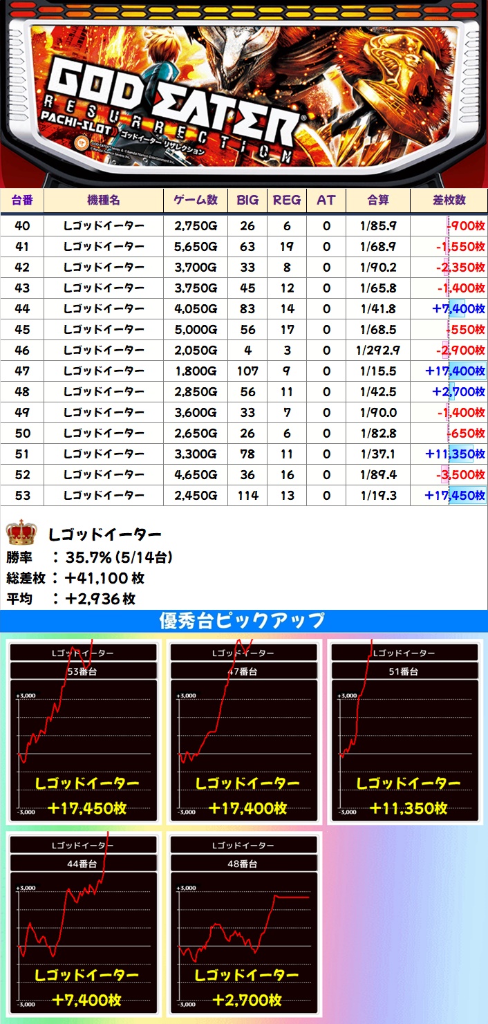 🌈Lゴッドイーター(14台)【平均+2936枚】