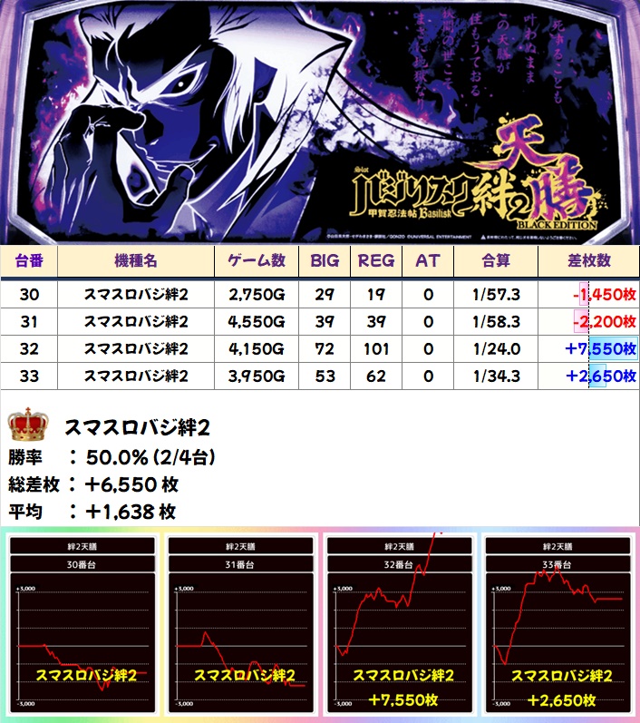 🌈スマスロバジ絆2(4台)【平均+1638枚】