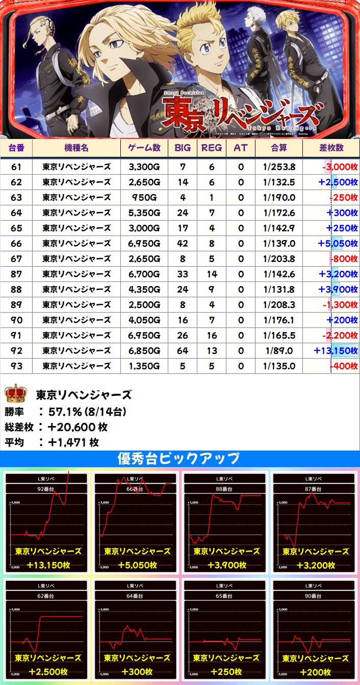 🌈東京リベンジャーズ(14台)【平均+1471枚】
